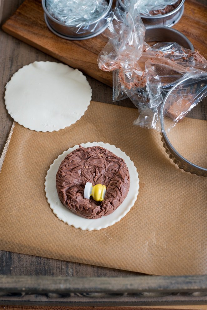 8 cm Ø ausstechen. Die Creme in einen Spritzbeutel mit großer Lochtülle füllen und langsam von außen nach innen gleichmäßig auf den Blätterteig auftragen. 1 Bohne oder 1 kleine Porzellanfigur.